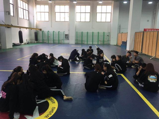 下午13:30,大家准时在武术馆集合,开始进行自己的成套编排,有的在借鉴视频中好的操化,有的在绞尽脑汁的创编动作,每位同学都热情洋溢,自信满满的投入其中。