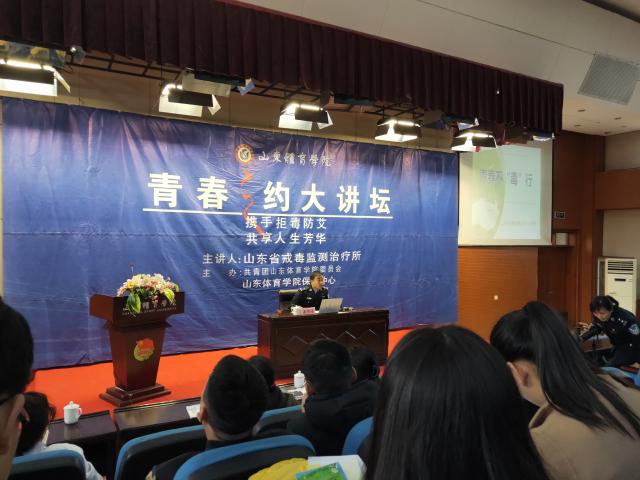 11月22日,以“携手拒毒防艾,共享人生芳华”为主题的禁毒防艾宣传活动在我校济南校区一号教学楼四楼报告厅举行。此次活动由共青团山东体育学院委员会、山东体育学院保健中心主办,山东省戒毒监测治疗所进行主要演讲,体育艺术学院全体班委积极参与学习。