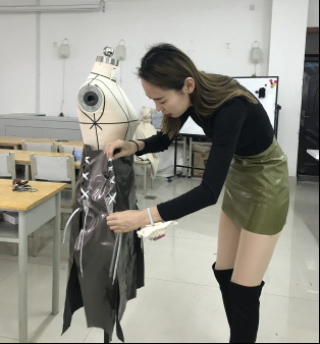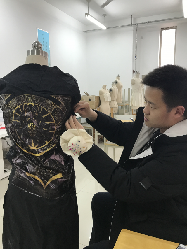 毕业班的学生进行服装设计。学生把四年中对服装的理解和想要表达的思想放在服装上。