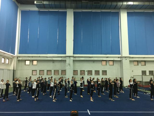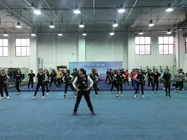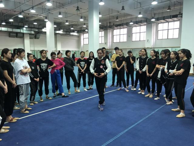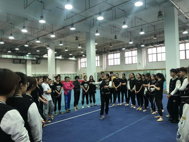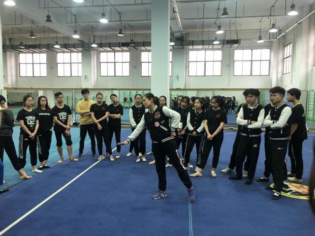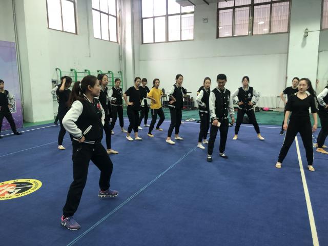 2019年4月25日上午,体育艺术学院健美操教研室刘爱梅老师带领2016、2017、2018级舞蹈表演专业啦啦操方向的同学们进行技能周的活动实践。学习了全国排舞推广曲目《舞动中国》。