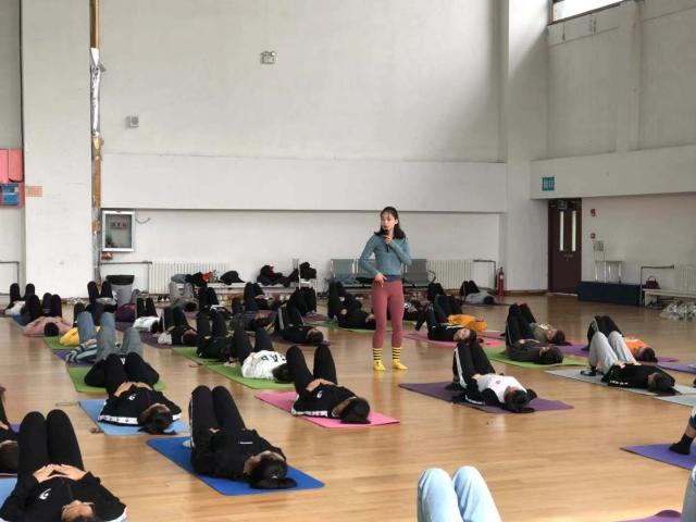 2019年10月28日上午,山东体育学院体育艺术学院2019级中国舞方向学生进行专业技能培训实践周普拉提的学习。