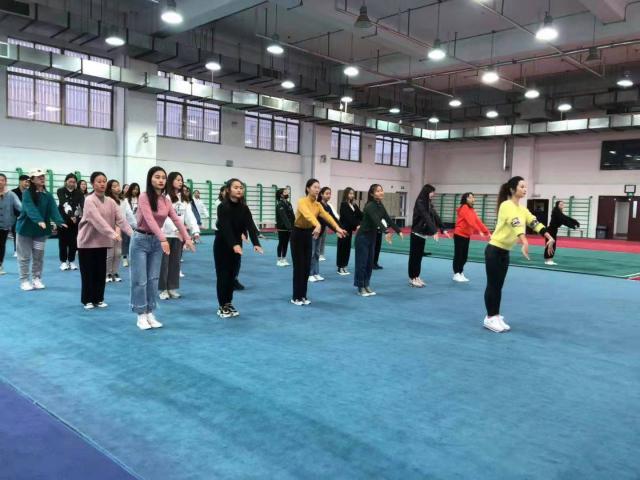 2019年10月29日上午,体育艺术学院中国舞方向学生在武术馆学习了中国风健身操舞。