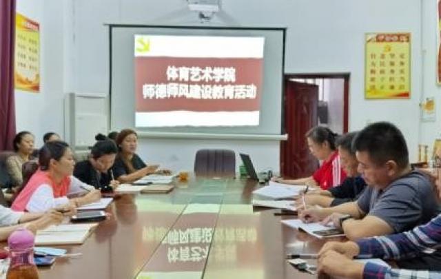 2020年9月8日,体育艺术学院在二号教学楼二楼会议室开展了师德师风建设教育活动。体育艺术学院党总支书记、院长田敏,党总支副书记殷善兵,副院长祝文刚、华措以及全体老师共同出席本次活动。