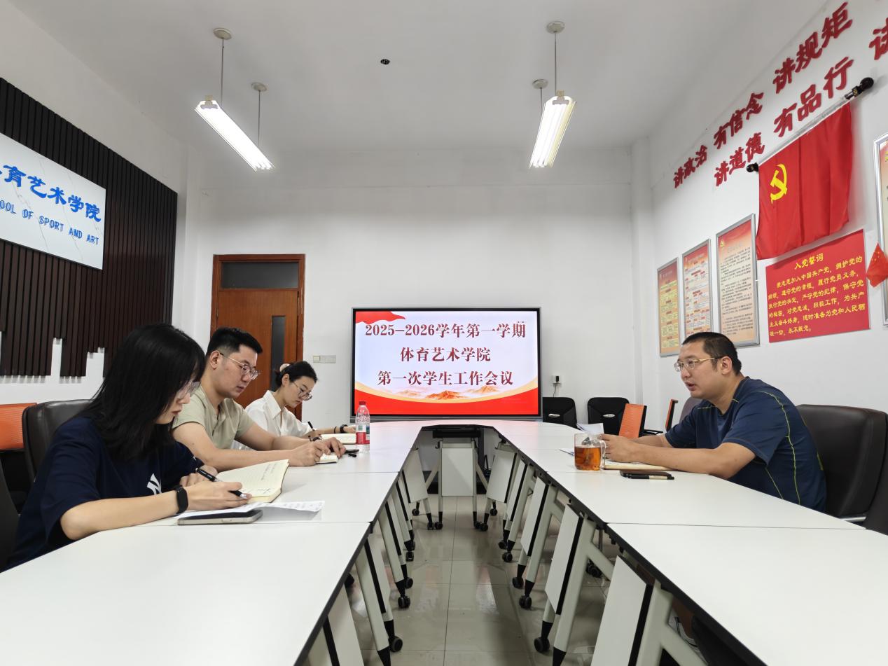 8月5日上午,体育艺术学院在二号教学楼二楼党员活动室召开2025-2026学年第一学期第一次学生工作会议。会议由党总支副书记陈硕主持,辅导员参会。