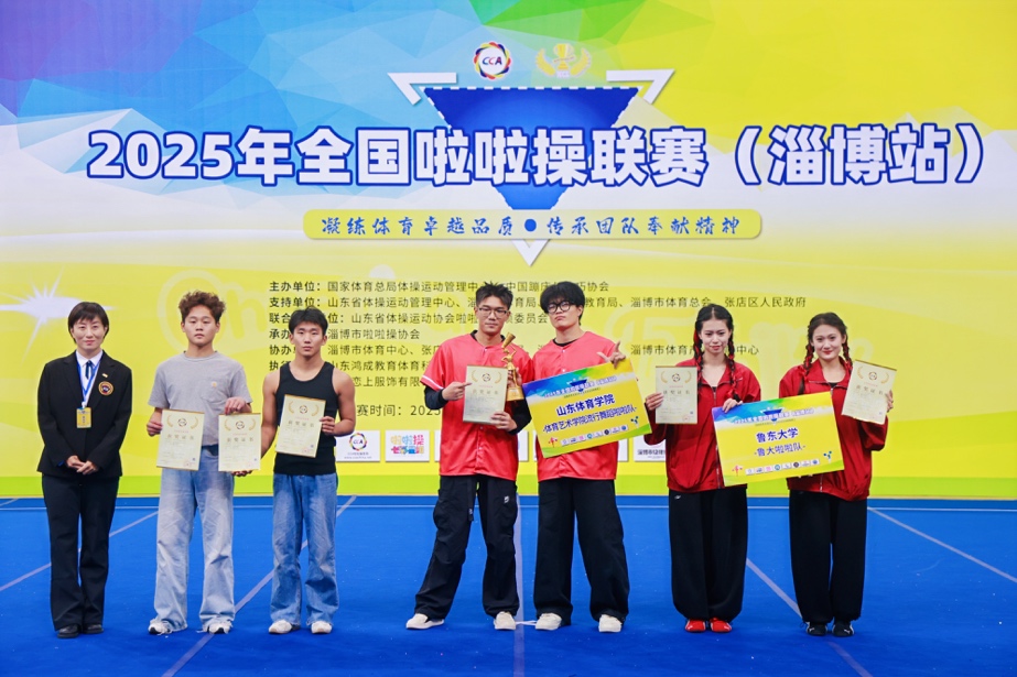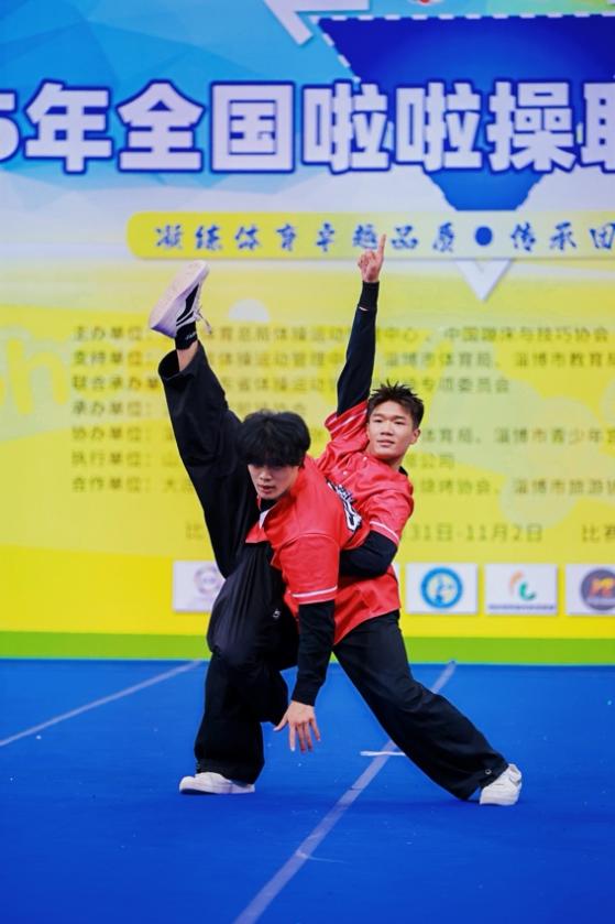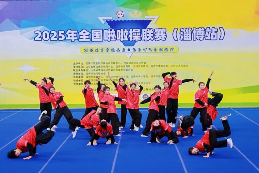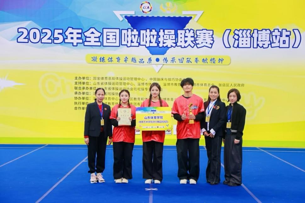 2025年10月31日-11月2日,在2025年全国啦啦操联赛(淄博站)中我校体育艺术学院舞蹈表演(流行舞)专业的参赛运动员一举斩获三项冠军。此次比赛由国家体育总局体操运动管理中心与中国蹦床与技巧协会联合主办,吸引了来自全国各地多所院校共计112支队伍的3000余名优秀运动员同台竞技。山东体育学院体育艺术学院健美操教研室精心组织学生参赛,俞晓倩老师与高峰老师共同担任教练员,凭借扎实的专业功底与出色的舞台表现,我校学子最终在激烈角逐中脱颖而出,斩获三项重要奖项:公开青年甲组 - 街舞规定动作(2025 版)- 超级 B 第一名、公开青年甲组 - 集体街舞自选动作第一名、公开青年甲组-双人街舞自选动作第一名。这一优异成绩不仅是对参赛学子辛勤付出的肯定,更是我校舞蹈表演(流行舞)专业教学质量与人才培养水平的有力证明,也为学校赢得了直接晋级全国啦啦操联赛总决赛的资格。